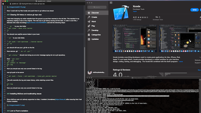 I used my inbuilt Git app in Terminal on my Mac to initiate Git. Though it sounds easy, I had a hard time doing so since this was my first time working on command line! First I had to install XCode for Mac to install Git on my computer.
