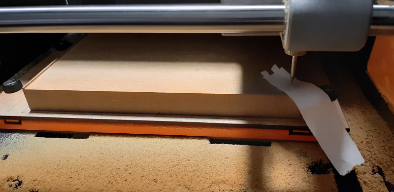 Put up the mill in Z axis from the board (use +Z VPanel button in ‘continue’ mode) to avoid accidental scratches