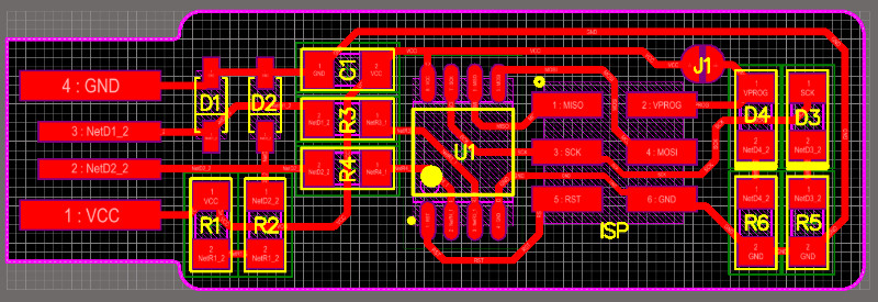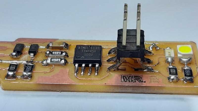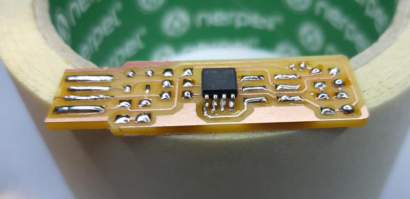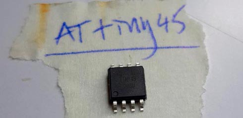 ATtiny45 on the board has the code loaded onto it and is working correctly.
