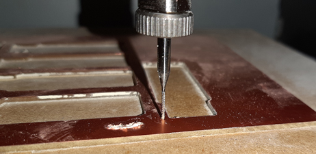 The way to produce a PCB is by milling the surface of a copper layered board in X, Y and Z axes with a desktop milling machine.