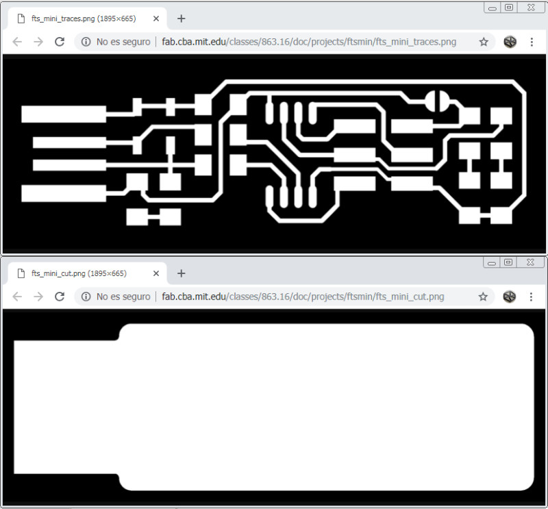 The idea with this design is to test the milling precision. We used a 0.4 mm (1/64’‘) thickness mill.