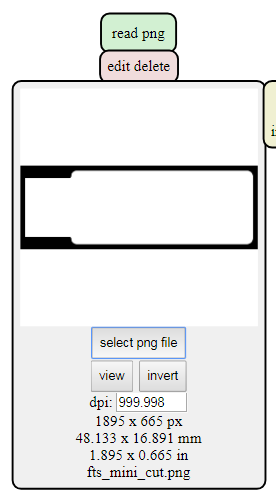 - Prepare design > Used prepared (37.337 mm x 12.800 mm - 5000 DPI) .PNGtrace and .PNGcut
