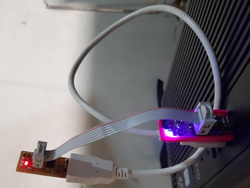 Plug the board into a USB port (USB 2.0 port and a short USB extension cable to reduce built-in USB ports damage risk Red LED should be lit up now.