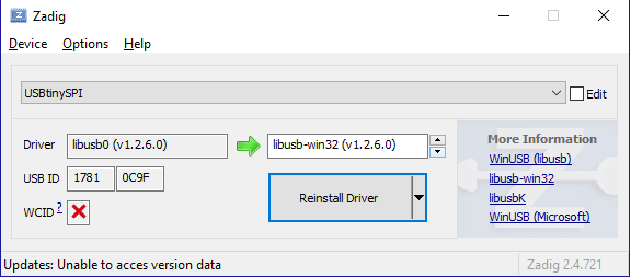- the programmer is connected correctly and pin 1 on the connector matches up to pin 1 on the board