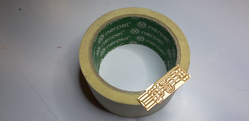 Prepare materials in the bed of the desktop milling machine > Recommended to clean the board and put it in the center of the bed with doubled faced tape to reduce milling depth differences (this will avoid many time and material innecesary problems)