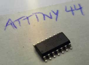 - microcontroller: attiny44A. Once the microcontroller is programmed, the program stored in non-volatile memory. This means that it will remember the program. ( ATTiny44-SSU datasheet )