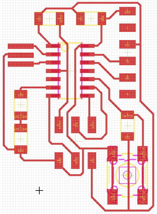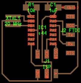 For this assignment I used FR-1 board produced on Roland monoFab SRM-20 desktop milling machine through a design made in Autodesk Eagle.
