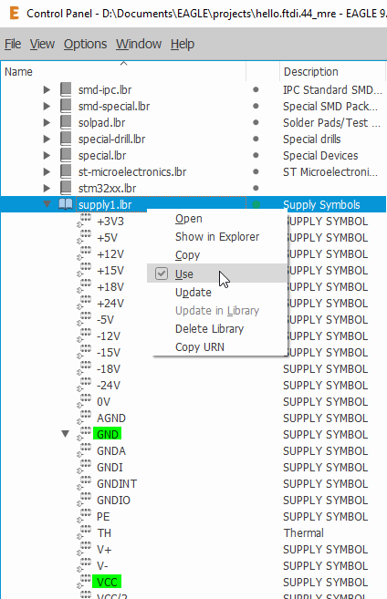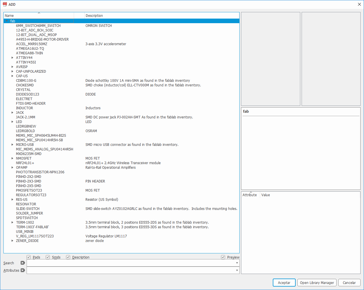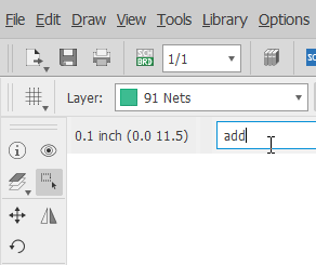 The first tool I used to begin working was ‘ADD‘ command to attacht new electronic components from the fab and supply-1 libraries to the scheme: