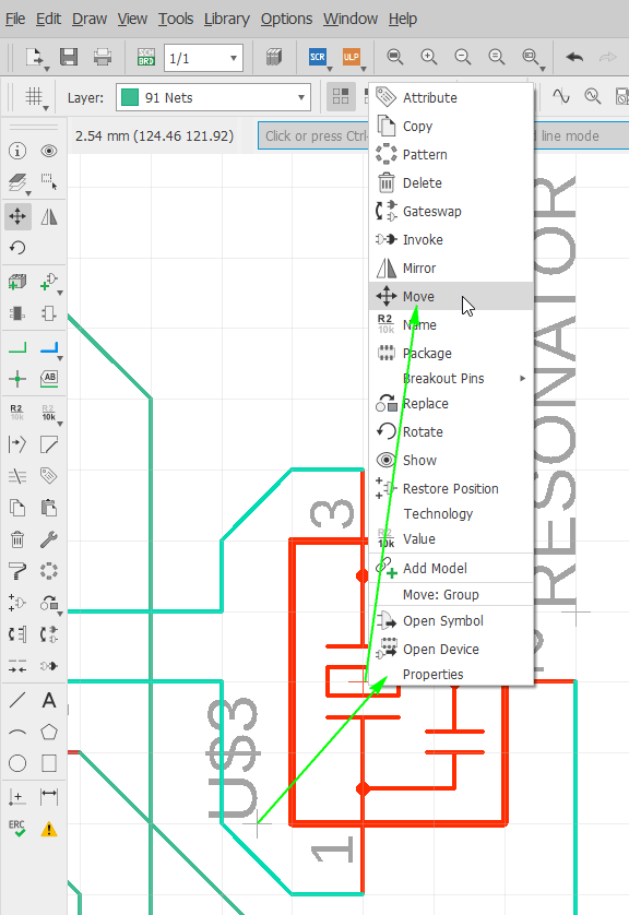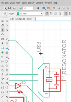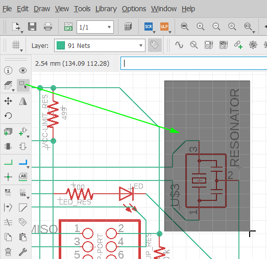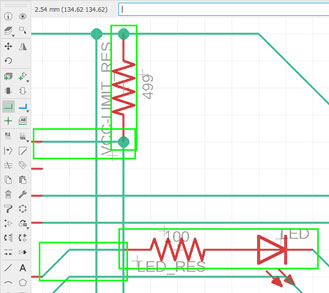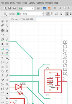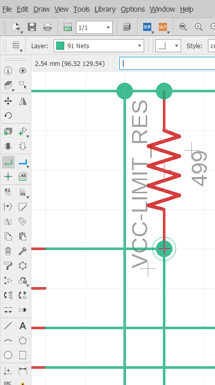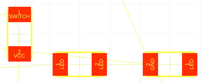 To create the circuit I used ‘Net‘ tools. It’s visually obvious that nets are been connected between components and nets: