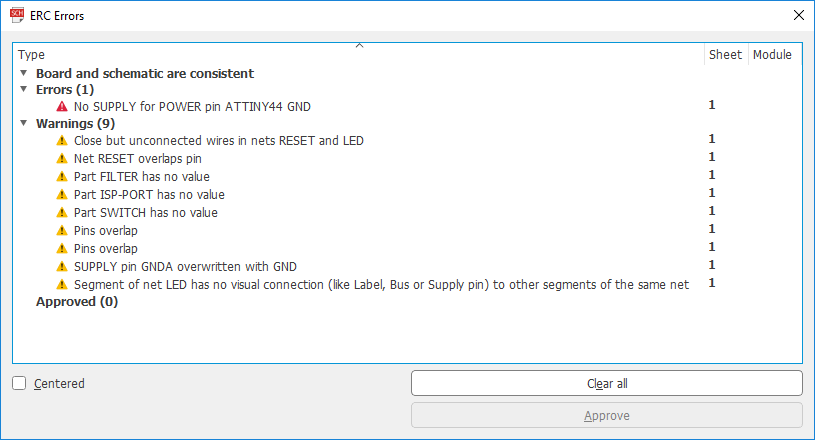 This was my final schematic drawing with no errors (checked with ‘ERC‘ tool).