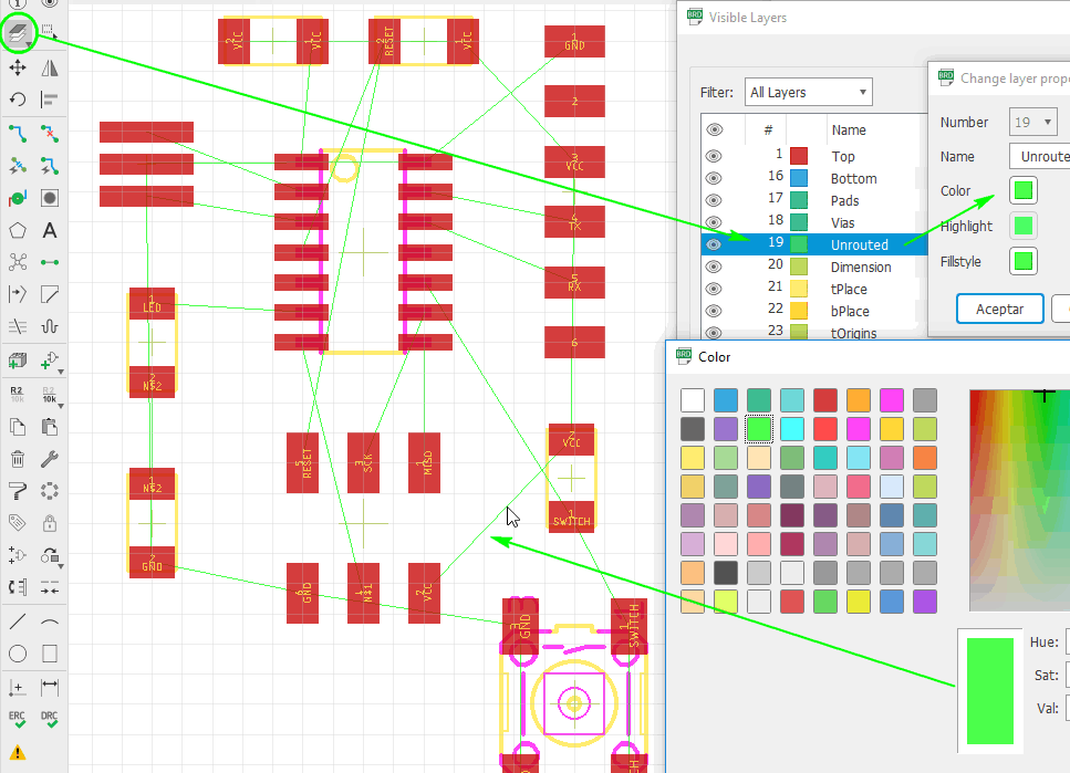 Also I managed the layer colours in ‘board’ mode: