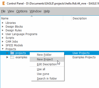 After that, I created a new project and setup the Eagle interface to make the work easier: