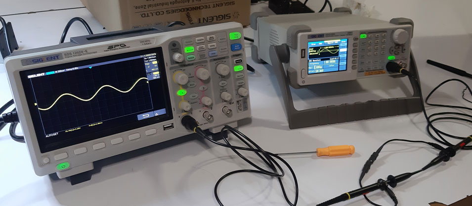 Finally, we played with osciloscope and a signal generator in order to familiarize with operators and relations between some concepts (voltage vs time) and their magnitudes, also with the support of digital interfaces.