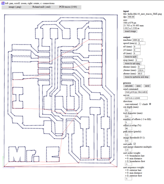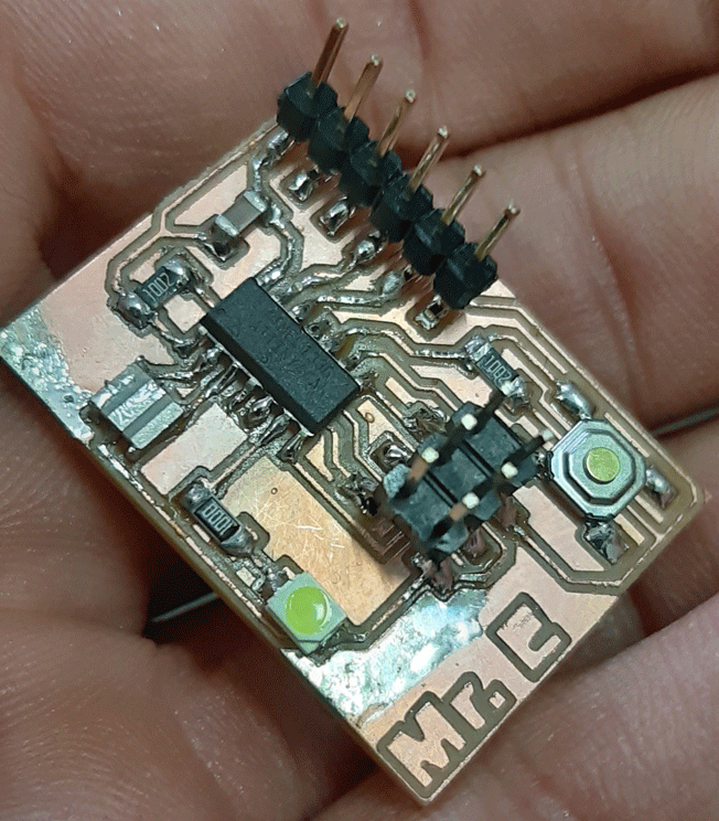 These tools were useful to clean debris on the board that could bring conectivity problems, and also to make traces more visible after the milling process (magic!). This was the result: