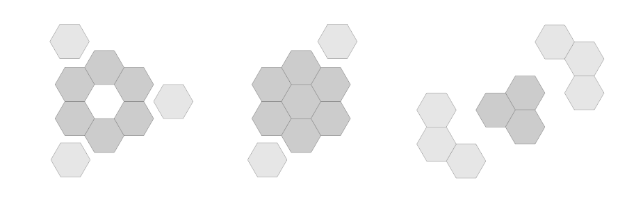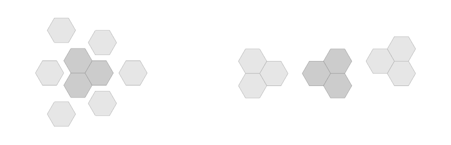 Then, I thought that I could made something modular to adjust to these different social settings, so I began to play with hexagon (as it’s a shape that includes the power of isosceles triangle, the partial capability of square matrix and the proximity to the circle to avoid hard corners) and the number 9: