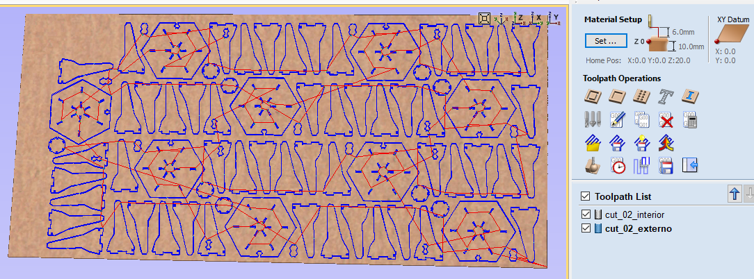 Jobs in Cut2D Pro used the same settings as in the group assignment, with the exception of the number of jobs. In this case, I made a diferrence between interior and exterior cutting.