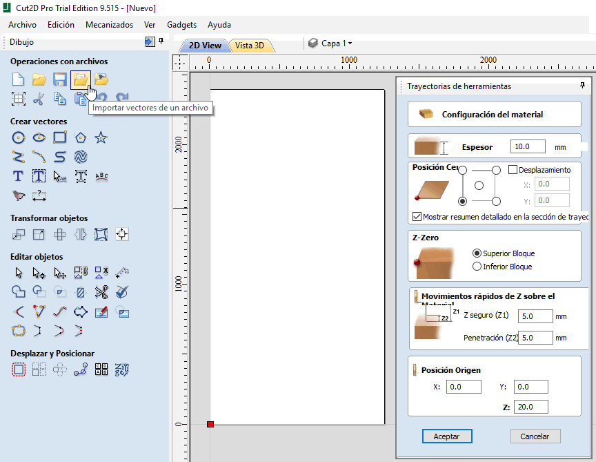 Note that not calculating exactly the dimensions of the design and the position on the coordinates origin, could end on problems, bigger when you are working with so powerful machines like CNC.