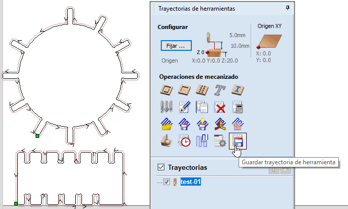 Define material (MDF) > Thickness: 10 mm / Tool coordinates and security movements