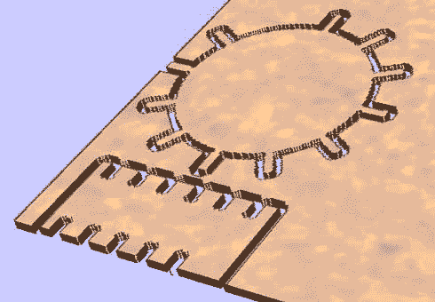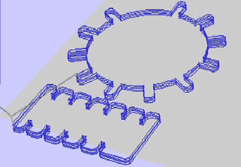 The left bottom circle was used to separate the pieces on a security distance of 22 mm for the milling process