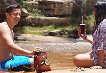 I thought then in paraguayan (and south-american) customs of meeting to share with mate or tereré, which is something usually done near the ground: