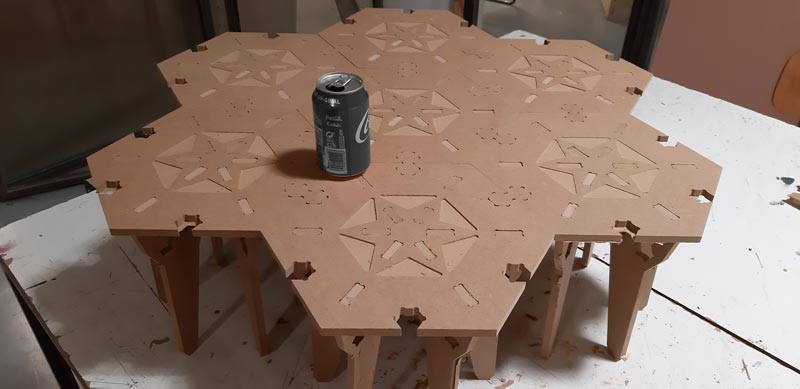 The idea with this design is to test the capabilities of MDF 10 mm to fit with more or less resistance, and with/without the support of glue between the joints. I also made the same design for PLYWOOD 15mm (see Original files).