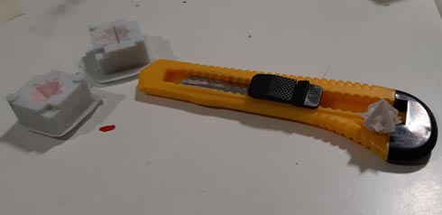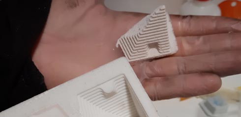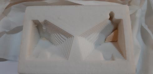 - make a mold of the material used (machinable wax) to preview the size of the design on the real scale