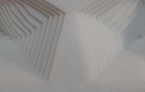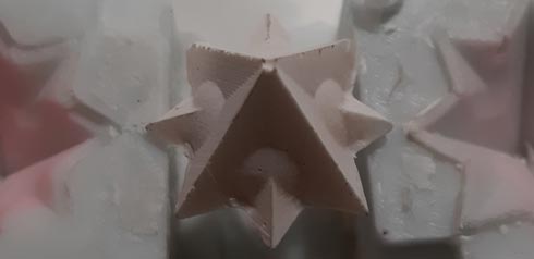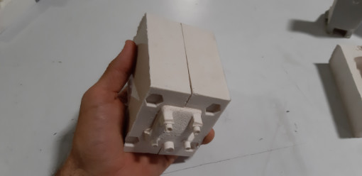 By this way, I could obtain results from a unique flexible mold, casting it 8 times and then assembling results; this returns the hollow cube. Also, from 8 flexible molds, a volume corresponding to the hollow of the cube could be casted.