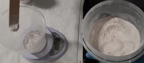Proportion (mix) > 1:2,5 (liquid:powder in weight)