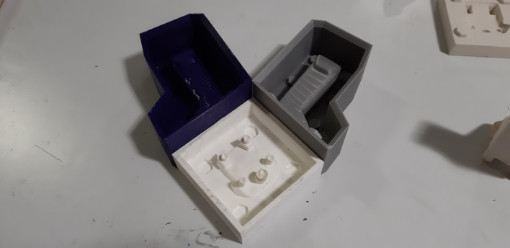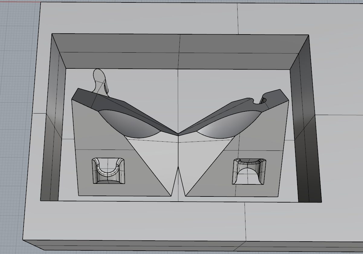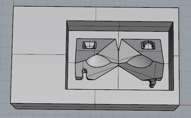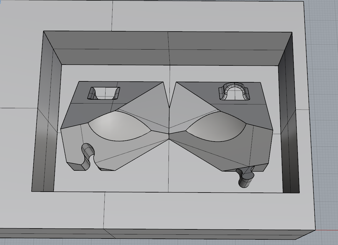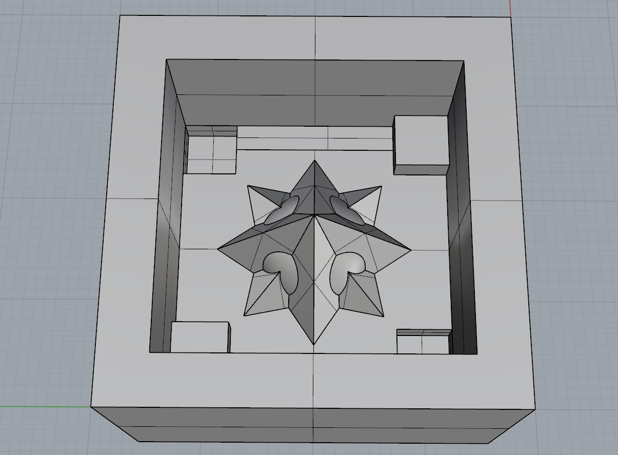 The idea with design was the same in a way: the design would be the same for the 2 views of the mold, and just turning it 90 degrees the mold would be ready to make the casting process.