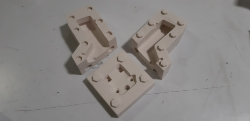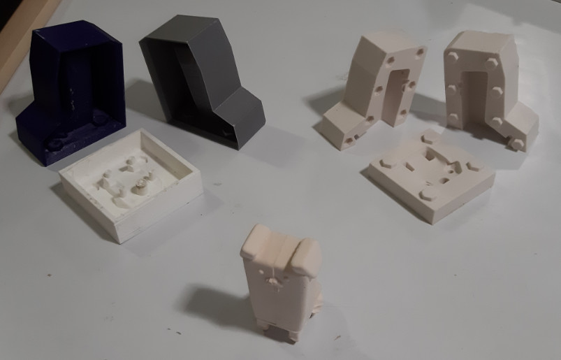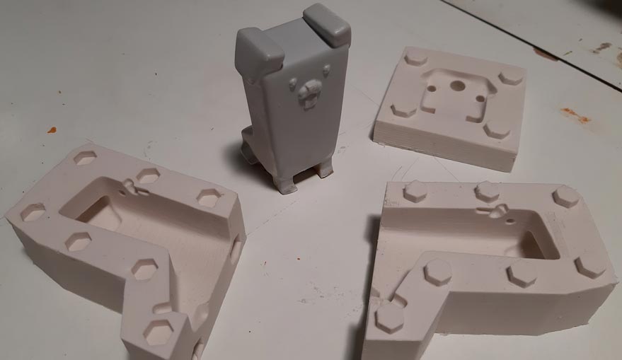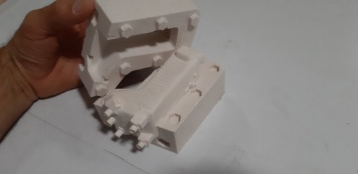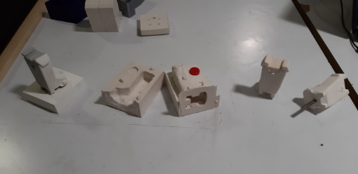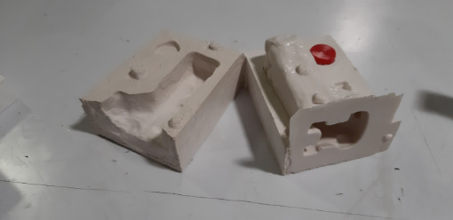 > Note: Sometimes, this implies to prepare more than the 2 usual molds - Molds/Contra-molds covering the whole final object must have holes for the casting process to pour the material into the mold and also to let go out the air into it
