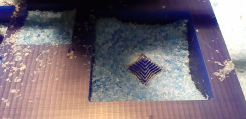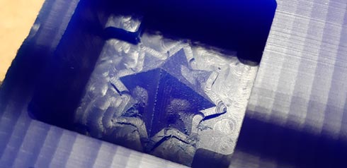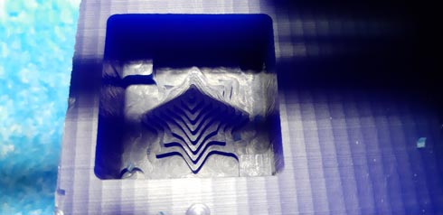 This test helped me to clarify if the milling file on wax milling would be ok. I was worried because of the non 100% reliable RhinoCAM simulation on small parts. Fortunately, I realized that I have to change my 3D model to ensure the correct milling.