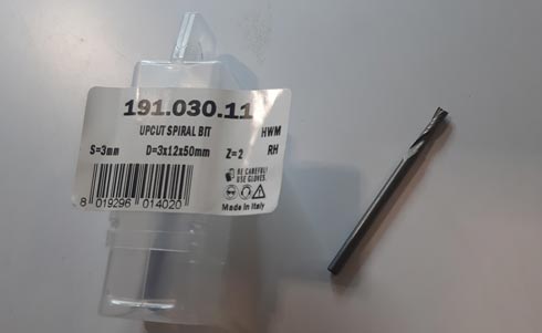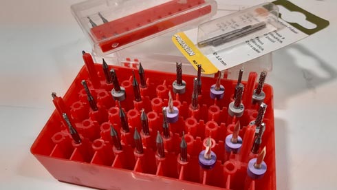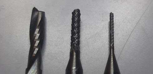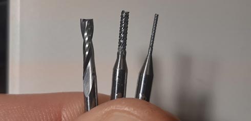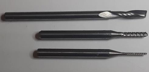 3.175 mm / 1.58 mm / 0.79 mm mills used on rough/finishing jobs