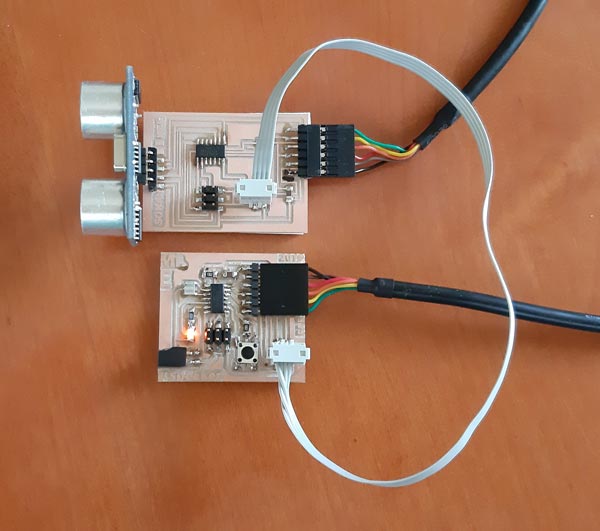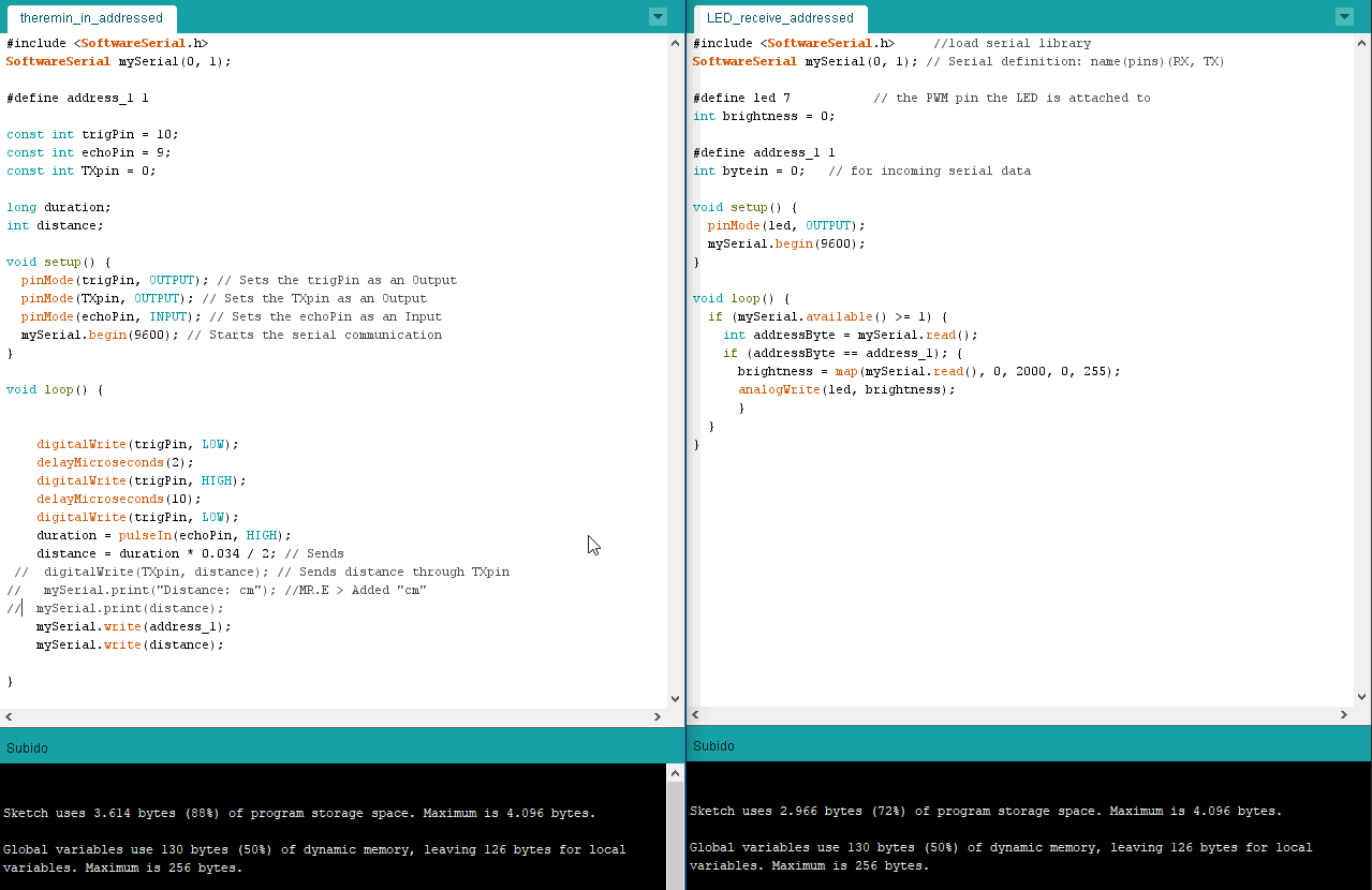 The idea with the code is to use the serialPrint library to send the sonar results to serial on the input device, and to receive them by the same way into the output device.