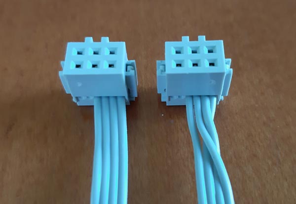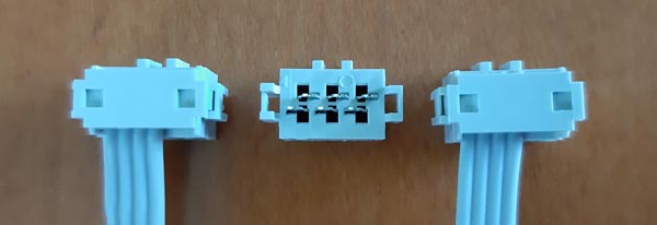 As TX must send the signal to RX, and considering that the 2x2 pin header footprints and traces are not modified on the boards, I had to swap 1 and 3 wires on the ribbon to make a cross link: