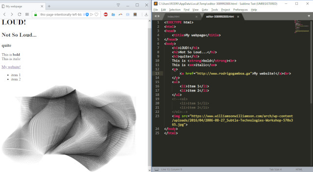 I started with this tutorial about web development. I installed Sublime Text to code locally. First, I created a new file, and saved it as “index.html”. So after following the HTML tutorial I ended with this: