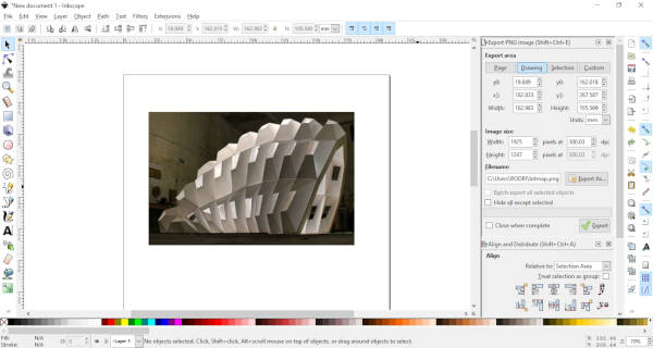 I want to use more open-source softwares. I have used Inkscape to vectorize images to then lasercut. But I have never designed anything there. So I’ll follow a similar process than Illustrator, to make a sticker out of an image. In this case, I’ll be drawing the Armadillo, an interactive parametric installation designed by students of DAFD and fabricated in Fab Lab Yucatán. This image is simpler than the one I made in AI.
