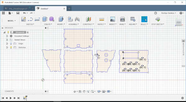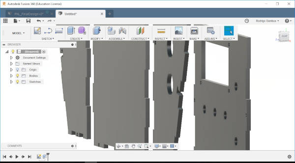 What I want to do with Fusion 360 this time is to make the 3D model of P_A+L! I already have the 2D design that I used to lasercut the pieces a year ago to fabricate the console. So I’ll export this into Fusion 360 and extrude it.