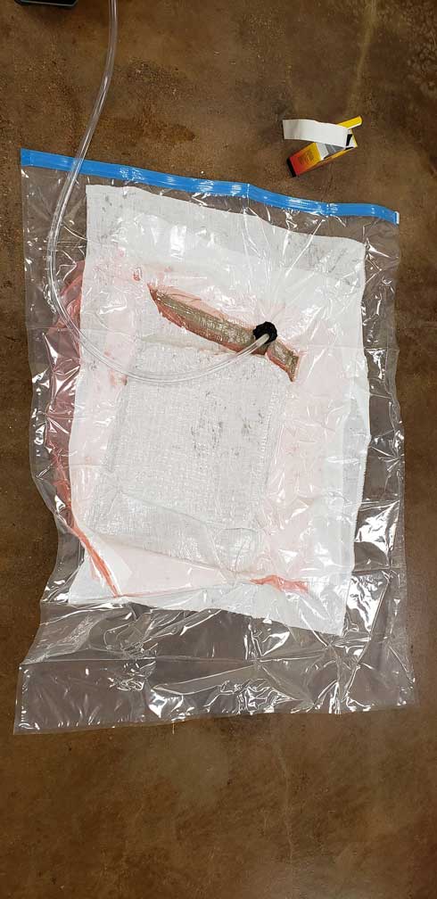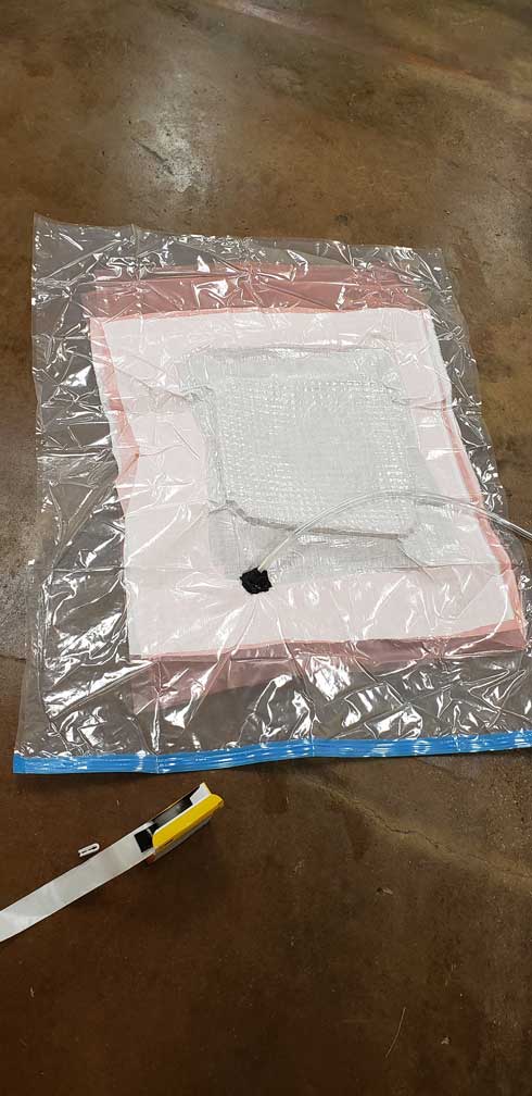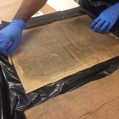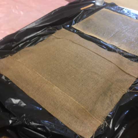 For the first part of my chair, I used three layers of resin-impregnated burlap to cover my chair back form. I used a vacuum pump and bag to cure the form: