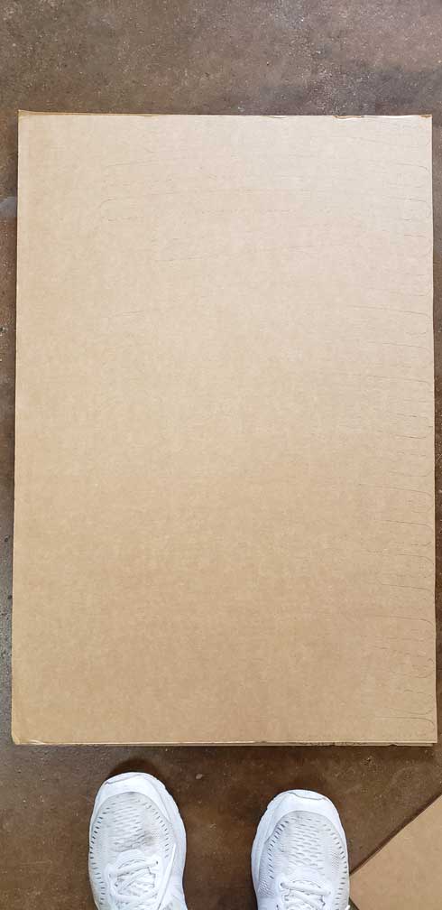 It’s been a while since I used the laser cutter, so taking time for a little refresher on how to operate it, lol. In planning for the frame cutting, I set up my slices to be cut on 20”x30” pieces of cardboard, knowing the size of the laser cutter table is roughly 20”x32”. My cardboard is 30”x40”x3/16” in size, so I simply cut 3 full size pieces of cardboard in half, giving me the 6 pieces of 20”x30” cardboard that I need to fabricate the internal structure (frame) for the seat and back of the chair.