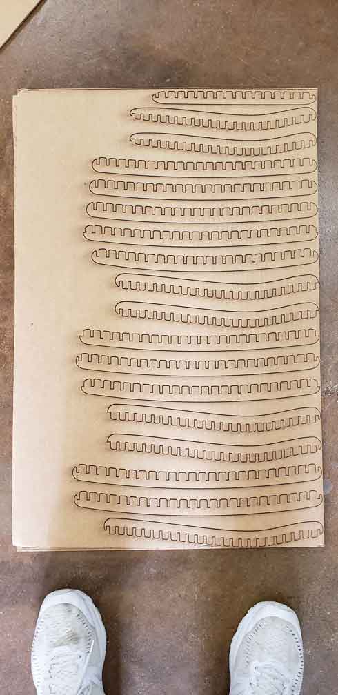 Separation & Assembly: Separating the poorly cut cardboard pieces ended up being a real time-consumer (about 8 hours, when it likely could have been done in 1 hour). I made the mistake of thinking that since my laser cuts were progressively better as I went along that this process would speed up, but I was proven wrong, lol. This part of the process was grueling, to say the least. Lesson: refine the laser cut settings for cardboard on test pieces before cutting your parts and save a day of work.