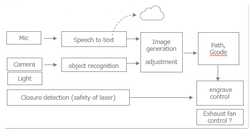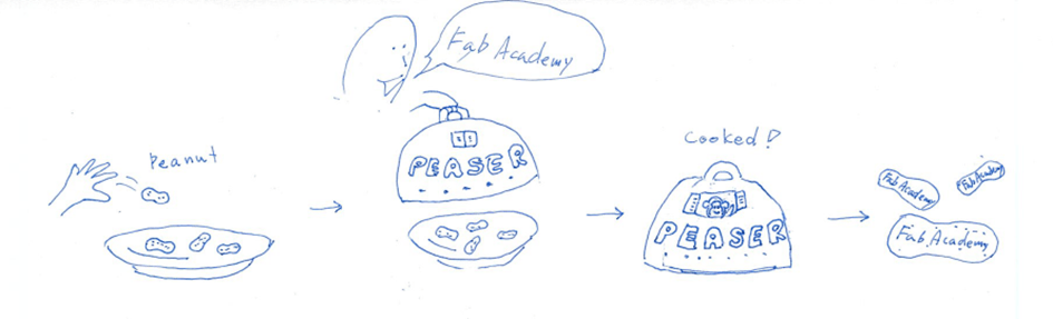 However, inspired by the first Fab Academy lecture, I changed my mind. Integrating weekly assignments (fab skills) and create a laser engraving machine with my originality added. The following sketch is the idea: laser engraver for food named “Peaser”. (smarter name idea is appreciated!)