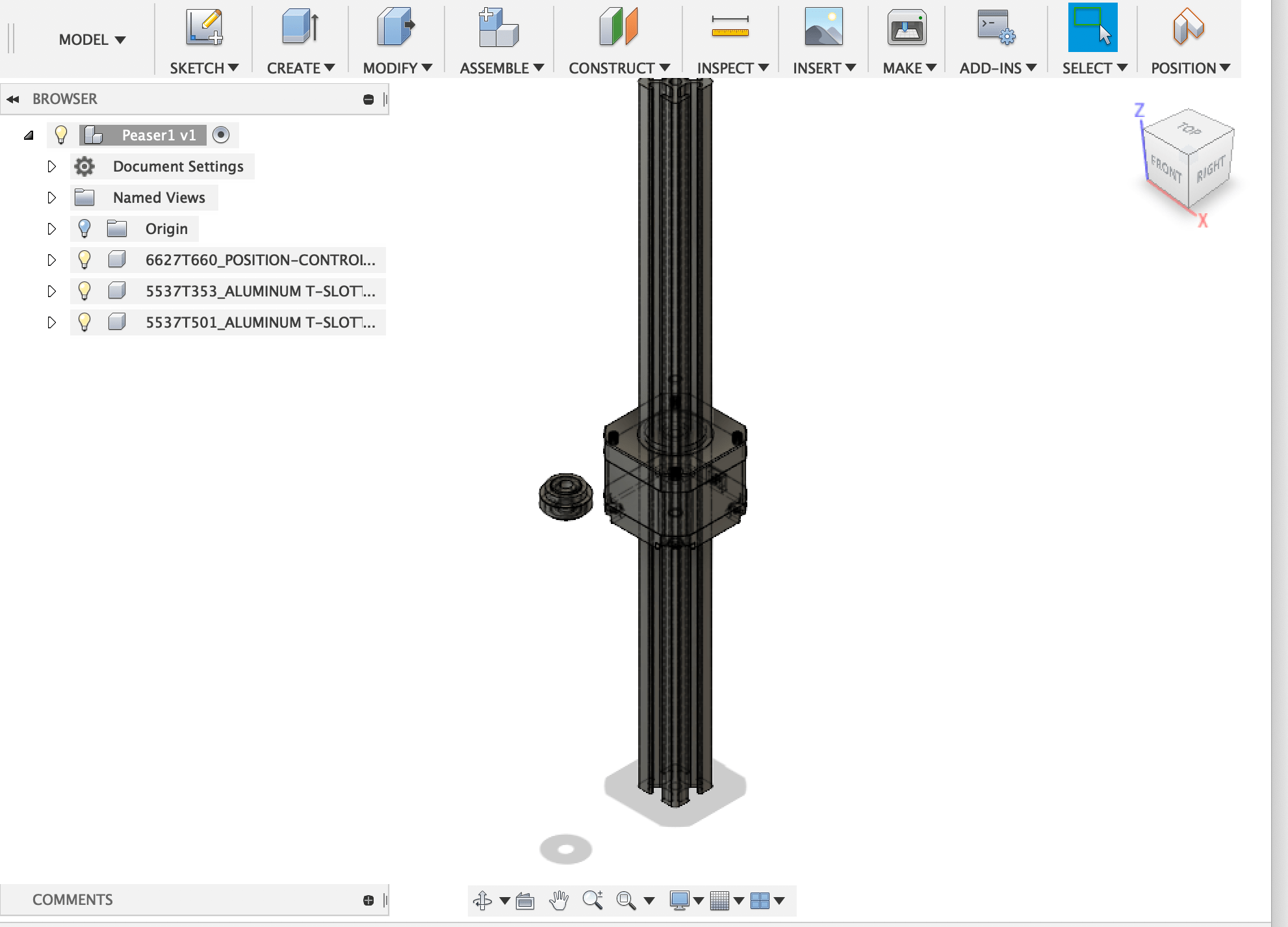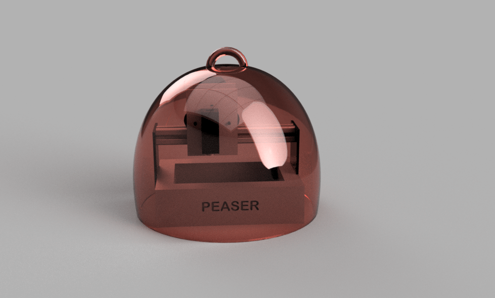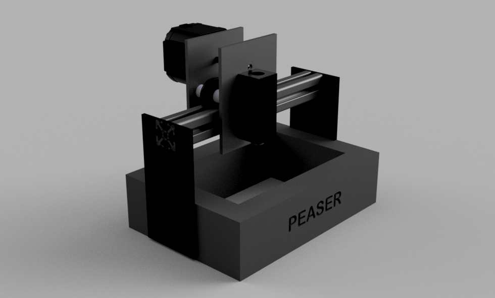To finalize the modeling, the laser unit was attached and text “PEASER” was engraved.