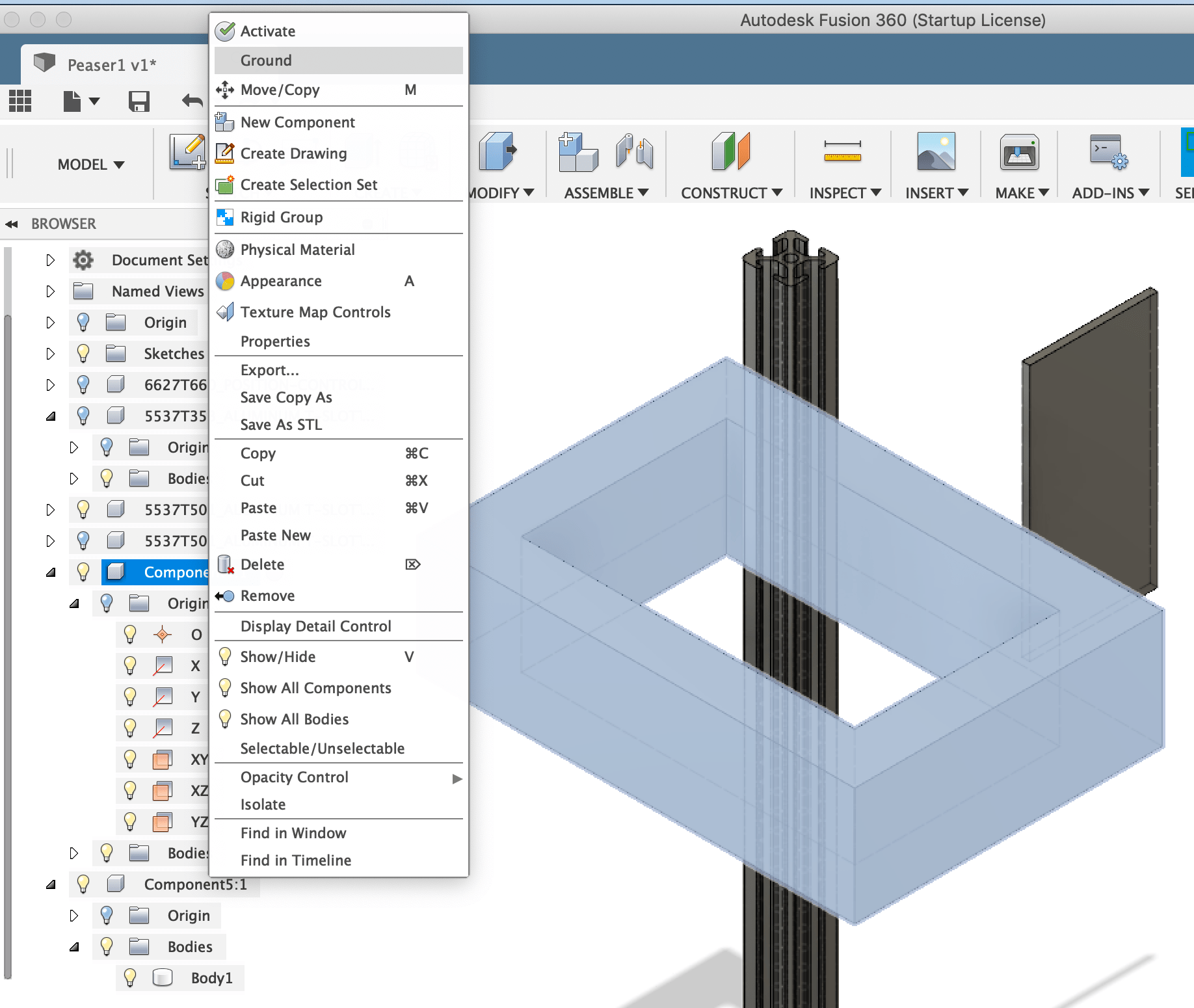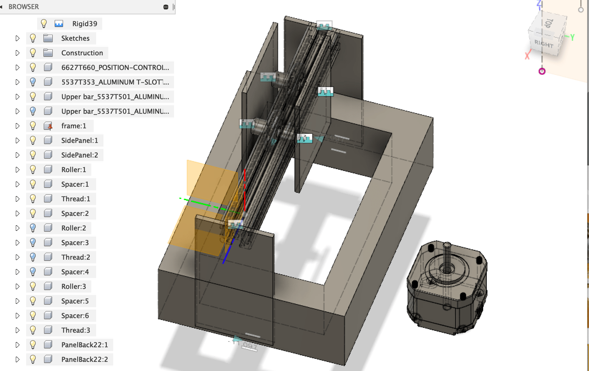 It was my first trial of assembly. I modeled side panel then converted it to the component for assembly.