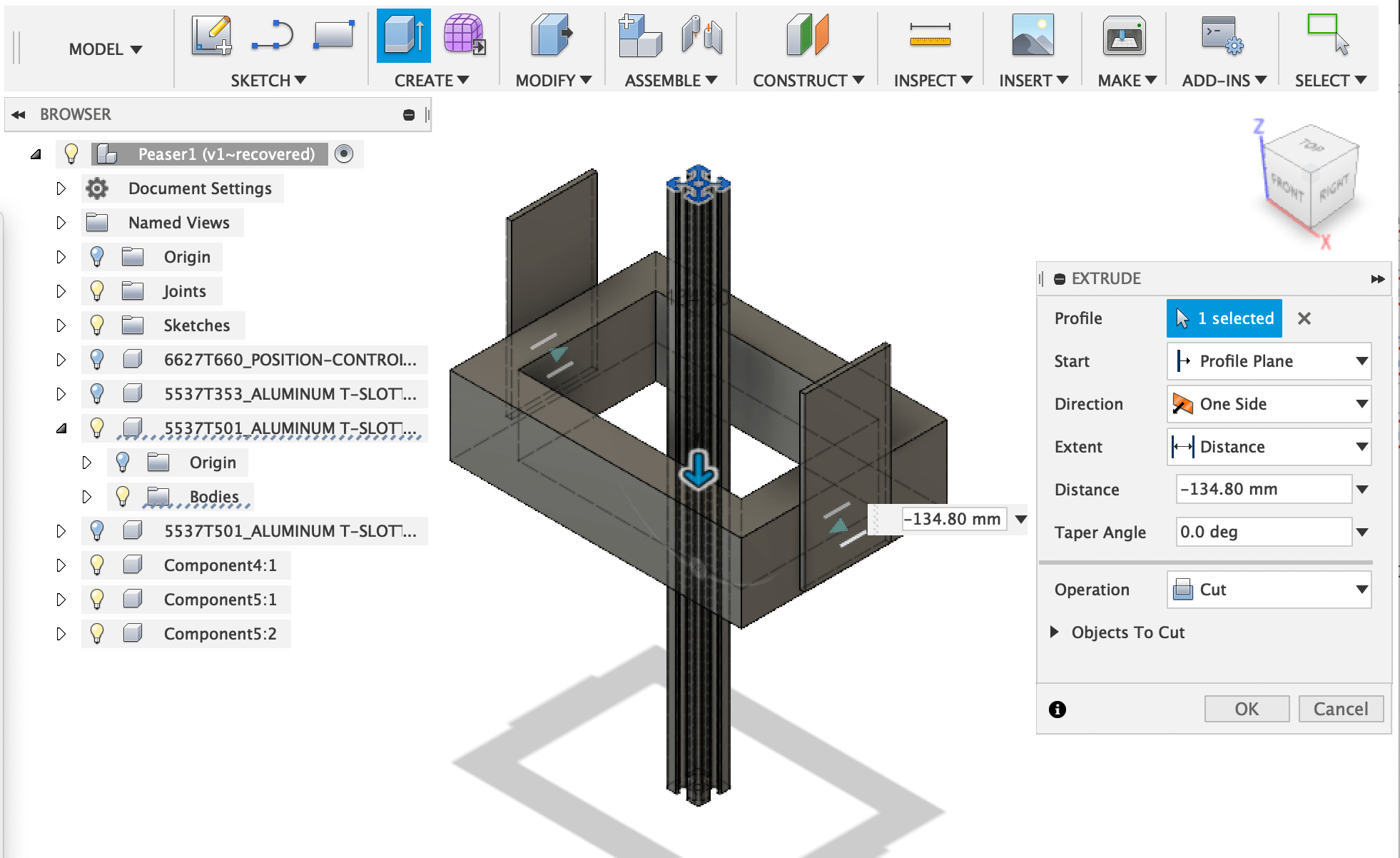 I wondered how to cut the length to fit the width of frame, then learned that “Extrude” function is one of the solution.