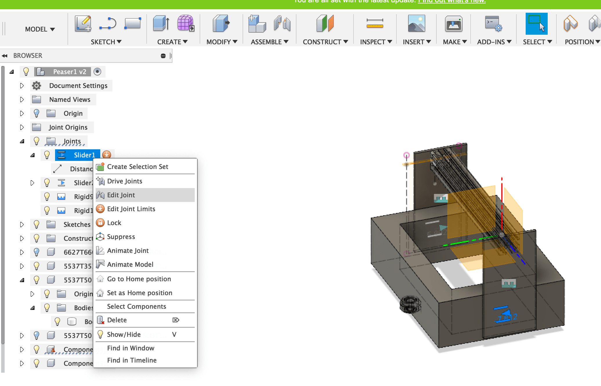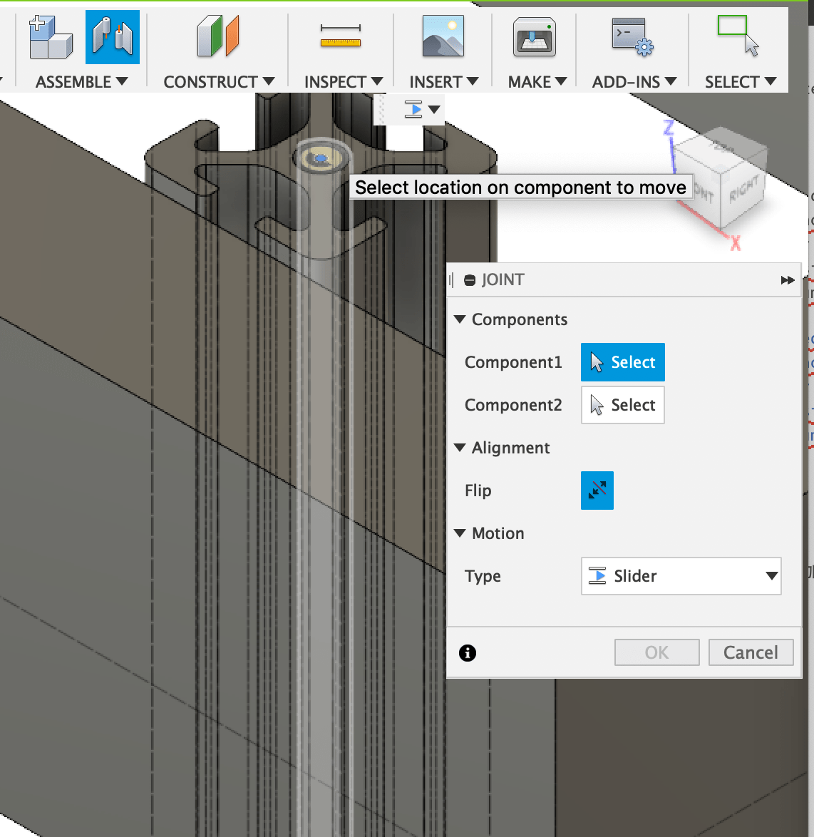 - Select “Joint” in the “ASSEMBLE’” menu.