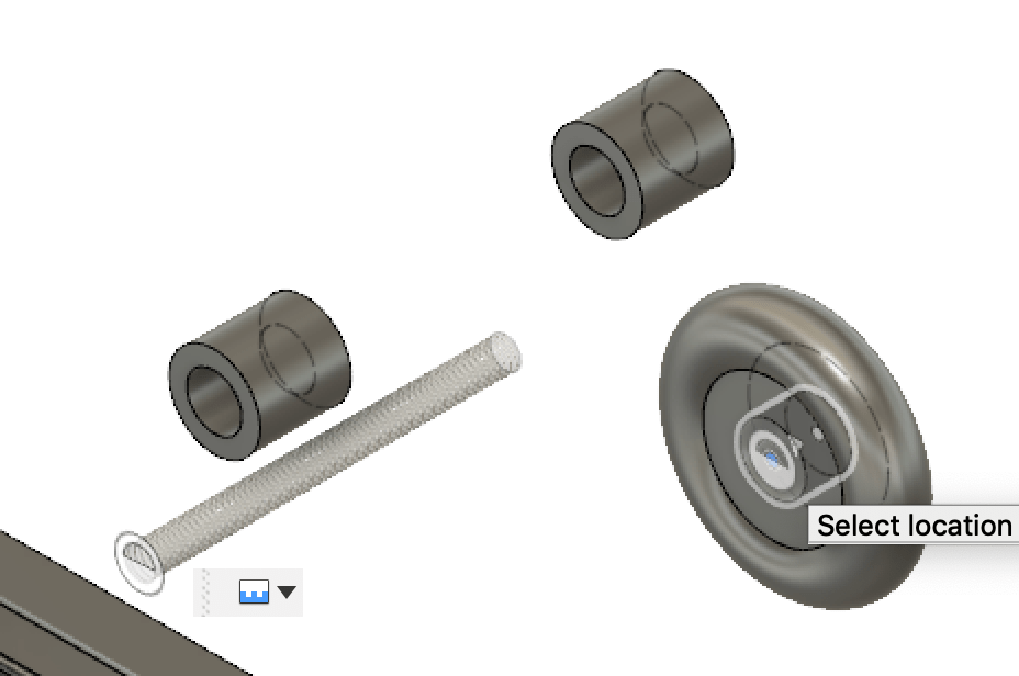 First I selected the surface of the roller, then attached it to the center of slot. However it was not able to joint. It seemed that the “joint origin” was not exist on the T slot, so I tried to created the origin at some places, then I found the following way.
