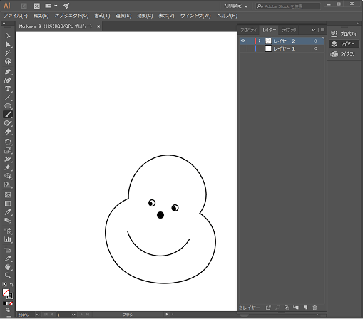I practiced writing a monkey face with curved tool since bezier tool looked difficult for me.The place clicked became an anchor point and it was easy to toggle the two mode, smooth point and corner point.
