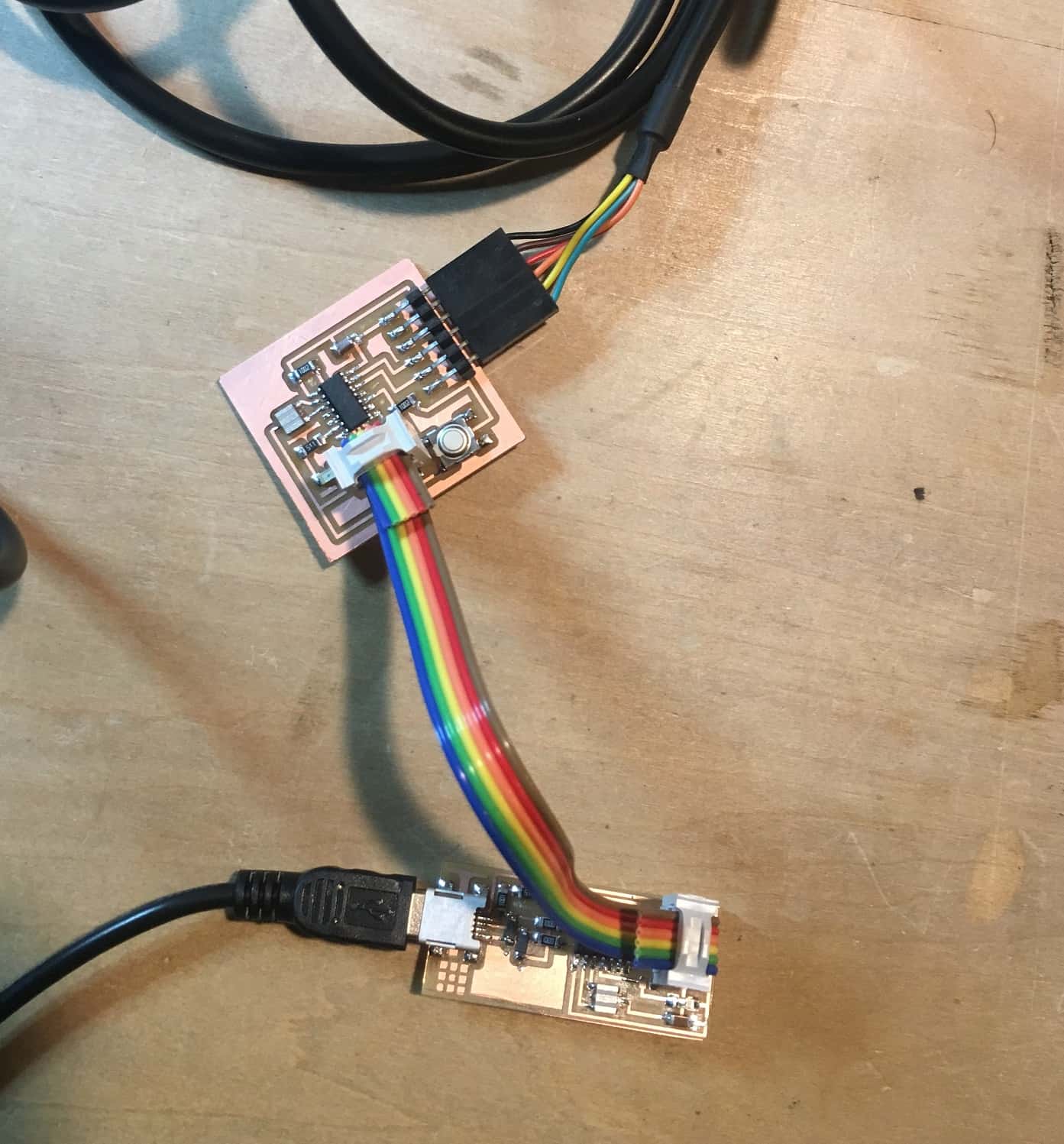 I read through the hello.echo board c program, then programmed a simple code for my week#7 board. I used Fab ISP board I created at week#7 for the programming. I referred the sequence and did compile, fuse and program.