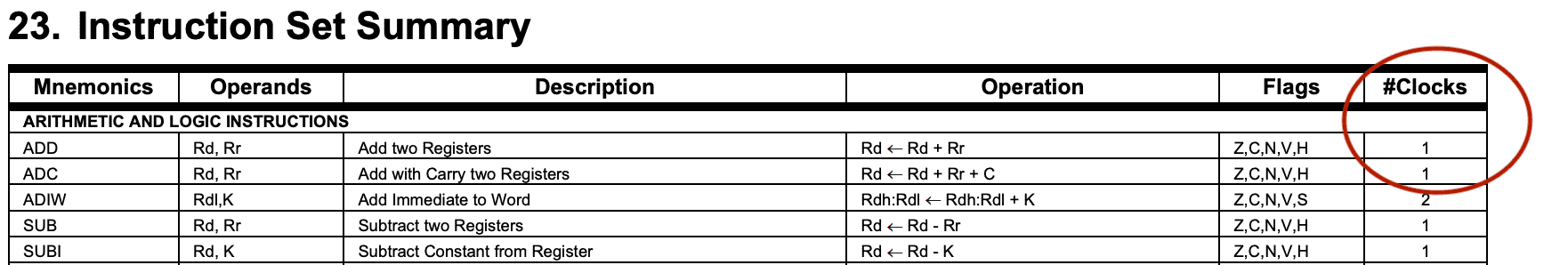 So I examined the instructions and confirmed that clock of instruction that use two registers is one clock as follows.