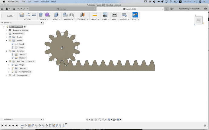Referring to this tutorial, I designed the rack and pinion mechanism.